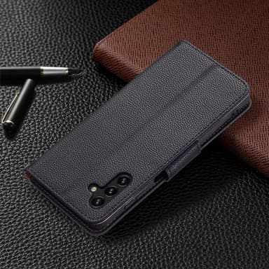Ensiluokkainen PU-nahkainen lompakkokotelo, jossa on korttipaikat.