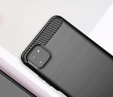 Iskunkestävä Armor Carbon-kuori TPU:sta, jossa on tyylikäs hiilikuituinen ulkonäkö.