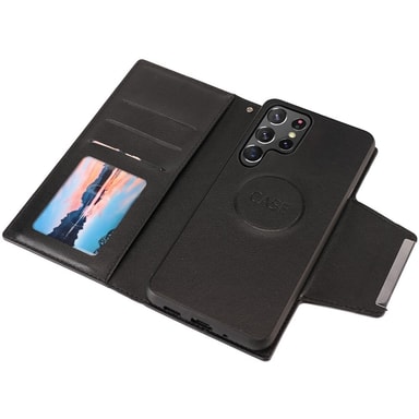 PU-nahkainen lompakkokotelo, jossa on magneettisesti irrotettava sisäkuori.