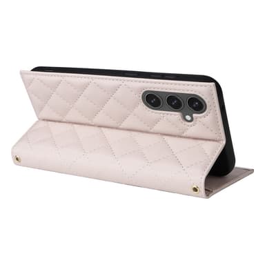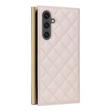 SKALO Samsung S25 FE Quiltattu olkahihna kullalla reunalla Lompakkokotelo - Beige