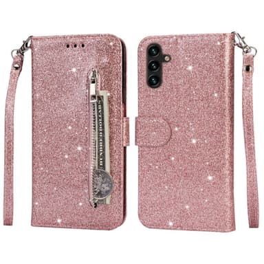 SKALO Samsung S25 Glitter Vetoketju Lompakkokotelo - Ruusukulta