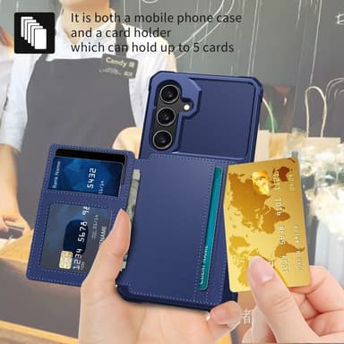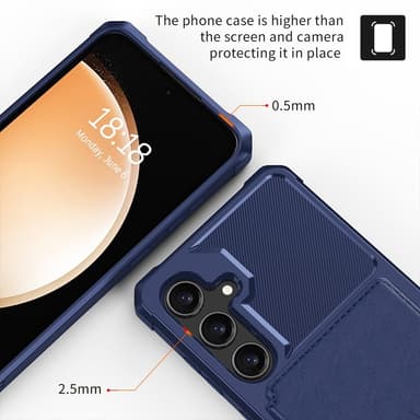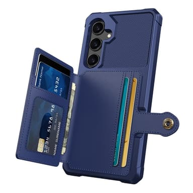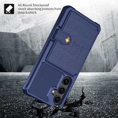 SKALO Samsung S25 Iskunkestävä kotelo Lompakolla - Sininen