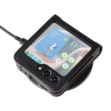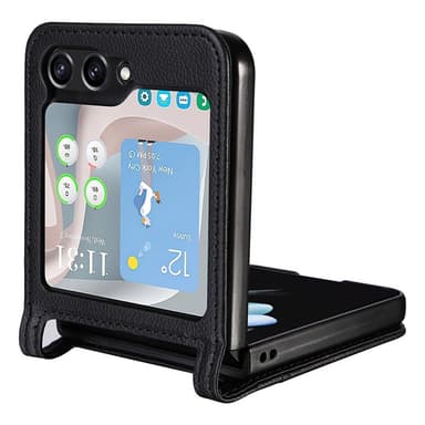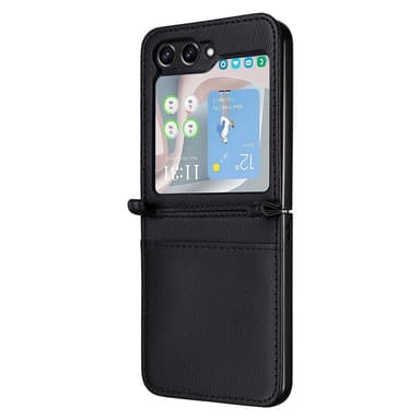 SKALO Samsung Z Flip7 FE PU-Nahka Litchi Korttitasku Suojakuori - Musta