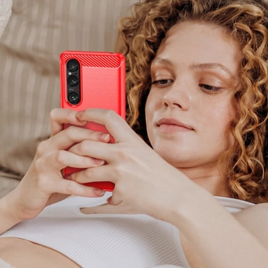 Iskunkestävä Armor Carbon-kuori TPU:sta, jossa on tyylikäs hiilikuituinen ulkonäkö.