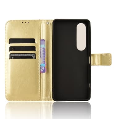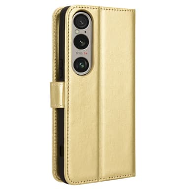 SKALO Sony Xperia 1 VI Crazy Horse lompakko PU nahka - Kulta