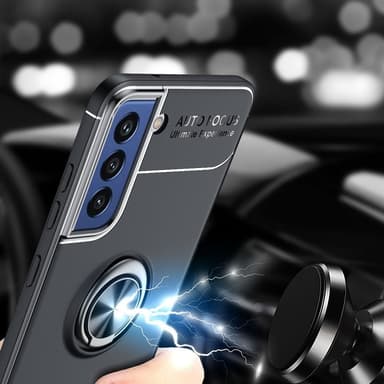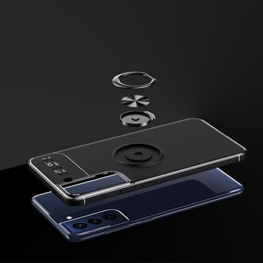 Sormirengastuki TPU-kotel o Samsung Galaxy S21 FE: lle - musta Integroitu rengaspidike mahdollistaa helpon käytön yhdellä kädellä Voidaan toimia myös 360 asteen pyörivänä jalustana Sisään rakennettu CD-suonet metallilevy voidaan kiinnittää magneettisTutustu ominaisuuksiin