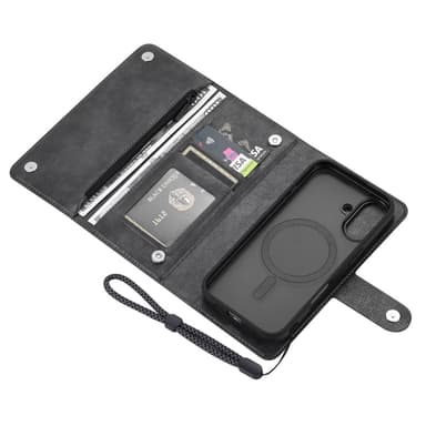 Hemmottele ylellinen PU-nahkainen lompakkokotelo ja kestävä PC + TPU-puhelinkotelo, jotka on yhdistetty täydellisesti tyyliin ja toimivuuteen. Irrotettava muotoilu antaa sinulle vapauden käyttää lompakkoa erikseen tai yhdessä puhelimen kanssa, kun taas MagSafe-yhteensopivuus takaa helpon ja turvallisen latauksen. Tunne olosi turvalliseksi RFID-estotekniikan avulla, joka suojaa korttejasi luvattomalta skannaukselta. Puhelimesi on optimaalisesti suojattu putoamisilta ja naarmuilta kestävän kotelon ansiosta. Nauti monipuolisesta 2-in-1-muotoilusta, joka tarjoaa sinulle parhaan molemmista maailmoista.