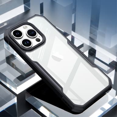 XUNDD-takakansi iPhone 15 Pro Max törmäyksenkestävä akryyli+TPU-puhelinkotelo Matkapuhelimen suojakuori - musta Valmistettu TPU+-akryylimateriaalista, joustava ja kestävä Kevyt ja ohut, pehmeä eikä vahingoita konetta Korotetut huulet näytön ja kameraTutustu ominaisuuksiin