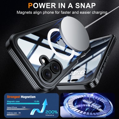Tämä musta iPhone 16 -sarjan suojakuori tarjoaa sotilasluokan pudotuskestävyyden, tehokkaan lämmönpoiston ja yhteensopivuuden MagSafe-lisävarusteiden kanssa. Se tukee langatonta latausta ja siinä on iskunkestävä muotoilu kattavaa puhelimen suojaus...Tutustu ominaisuuksiin