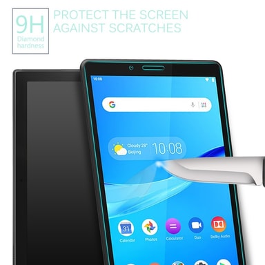 Kestävä ja naarmuuntumaton karkaistua lasia oleva näytönsuoja, jonka kovuus on 9H.