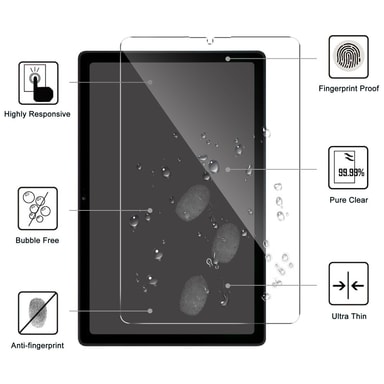 Kestävä ja naarmuuntumaton karkaistua lasia oleva näytönsuoja, jonka kovuus on 9H.