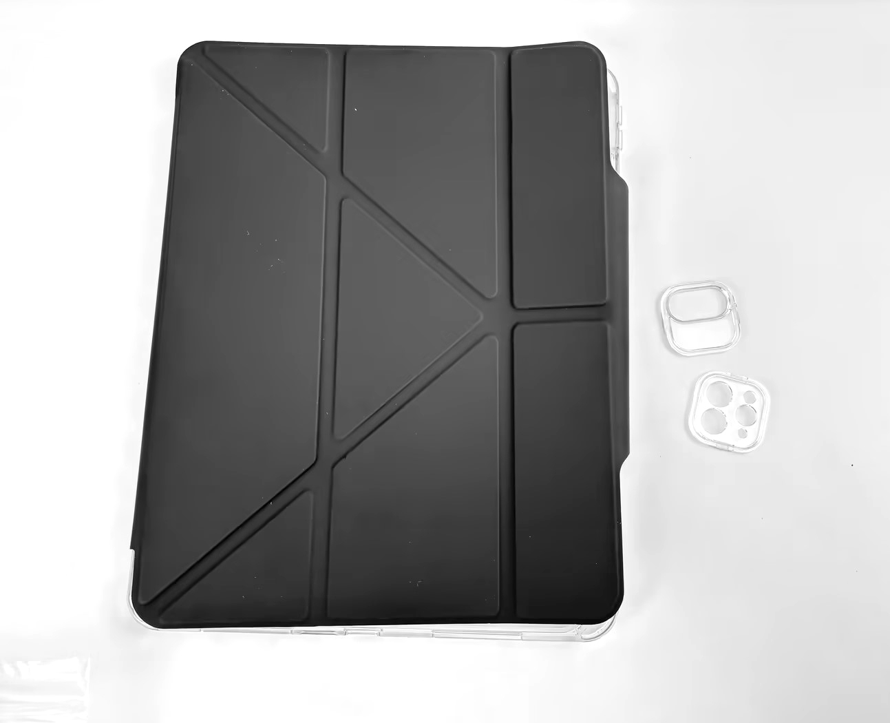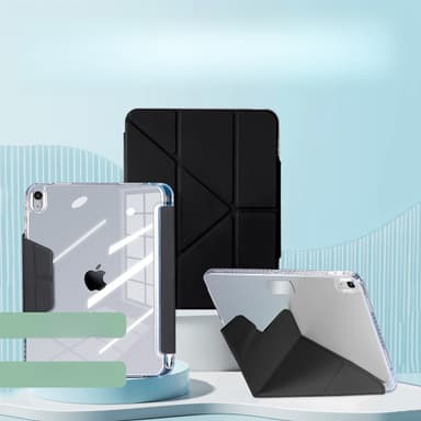 Monipuoliset katselukulmat: Kolminkertainen etukansi muuttuu tukevaksi jalustaksi, jossa on useita katselukulmia. Nauti mukavasta kirjoittamisesta tai videoiden katselusta.