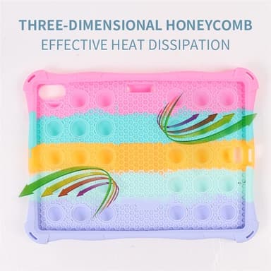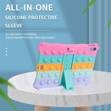 Tämä iskunkestävä Armor Popit -kotelo on valmistettu korkealaatuisesta luonnonsilikonista ja PC-materiaalista, tehden siitä myrkyttömän, joustavan, ympäristöystävällisen, uudelleenkäytettävän ja kestävän. Nerokas yhdistelmä suojakotelosta ja suositusta kuplafidget-lelusta tarjoaa sekä suojaa että viihdettä. Kohotetut fidget-kuplat suojaavat näyttöä ja kameraa naarmuilta ja pudotuksilta. Sisäänrakennettu jalusta ja suloinen sarjakuvamainen muotoilu mahdollistavat handsfree-katselun. Mukana tuleva hihna helpottaa kantamista. Tyylikäs asuste ja käytännöllinen stressilelu.