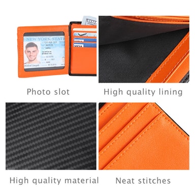 Tässä lompakossa on setelipidike, vaihtopaikka, asiakirjapaikka ja monikorttipaikka. RFID-lompakko voi estää RFID-lukijoita skannaamasta luotto- tai pankkikorttejasi ja pitää korttisi ja rahasi turvassa.