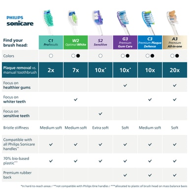 Saavuta ylivoimainen puhdistus Philips Sonicare C3 Premium -harjaspäällä. Sen harjakset poistavat 10 kertaa enemmän plakkia ja suojaavat samalla ikeniä. Yhteensopiva kaikkien Philips Sonicare -sähköhammasharjojen kanssa.Tutustu ominaisuuksiin