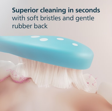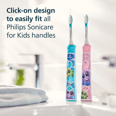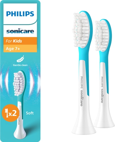 Yli 7-vuotiaille suunnitellussa Philips Sonicare for Kids -harjaspäässä on pehmeät harjakset, mukautettu istuvuus ja pehmeä kuminen takaosa. Yhteensopiva kaikkien Sonicare for Kids -hammasharjojen kanssa.Tutustu ominaisuuksiin