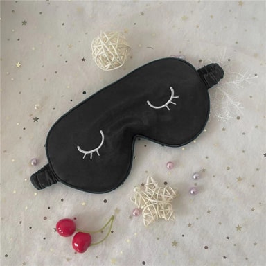Brodeerattu silkkimäinen Sleep Blackout -silmämaski, jossa säilytyskangaspussi Musta