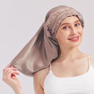 Ensiluokkainen silkkimateriaali: Valmistettu 100 % paksunnetusta 19-momme mulperisilkistä, tämä pitkä hiuslakki tarjoaa uskomattoman pehmeän ja ylellisen tunteen, joka on hellävarainen hiuksillesi.
