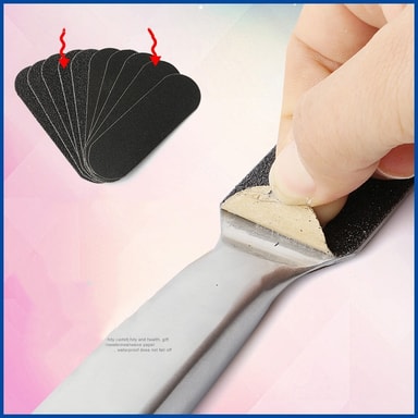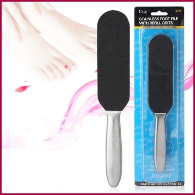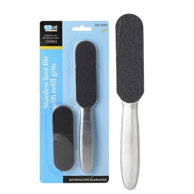 Kaksipuolinen muotoilu: Tässä jalkaviilassa on kaksipuolinen muotoilu, joka tarjoaa kaksi erilaista karkeutta yksilölliseen jalkojenhoitoon. Karkea puoli poistaa tehokkaasti pinttyneet kovettumat ja kuollutta ihosolukkoa, kun taas hieno puoli silottaa ja pehmentää ihoa jättäen jalat raikkaiksi ja elvytetyiksi.