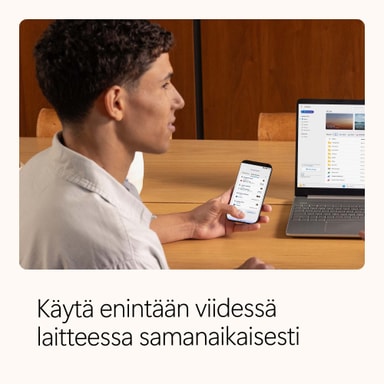 • Toimii PC:ssä, Macissa, iPhonessa, iPadissa ja Android-puhelimissa sekä -tableteissa