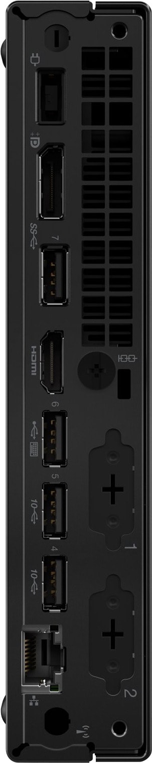 Etsitkö tyylikästä pöytäkonetta, joka mahtuu kaikkialle? ThinkCentre M70q Gen 5 Tiny -tietokone voidaan asentaa helposti näytön taakse, pöydän alle tai jopa kätkeä kirjahyllyyn. Voit myös sijoittaa sen vaakasuoraan tai pystyyn – mikä vain sopii tarpeisiisi. Lisäksi se tukee jopa kolmea näyttöä, jotta saat kaikki tarvitsemasi näkymät.