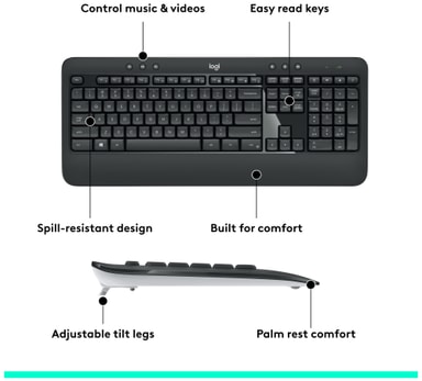 Tee työskentelystä mukavampaa ja helpompaa Logitech MK540 -näppäimistöllä ja hiirellä. Ergonomisen muotoilun, pitkän paristokeston, luotettavan optisen hiiren ja täysikokoisen näppäimistön avulla päivät kuluvat mukavasti.Tutustu ominaisuuksiin