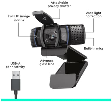 Yksinkertainen, mutta tehokas Logitech C920s Pro HD -webkamerassa on kaikki tarvittava videopuheluiden puhumiseen. Se on varustettu HD-automaattitarkennuksella ja valoa korjaavalla teknologialla, jotka tuottavat laadukasta kuvaa elävillä väreillä.Tutustu ominaisuuksiin