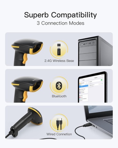 2D QR Viivakoodinlukija, Langaton, 2600mAh akku, Plug and Play