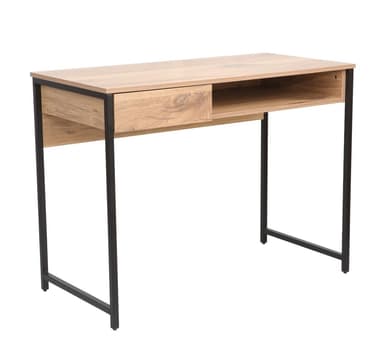 Työpöytä DIMITRA laatikolla 100x50xH76cm, rustiikki/musta.Materiaali: melamiinilevy.Väri: vaalea rustiikki puu/musta.Pöydän runko on valmistettu metallista ja viimeistelty mustalla jauhemaalauksella.Tutustu ominaisuuksiin