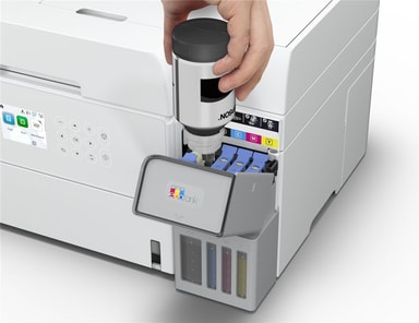 Säästä jopa 95 % tulostuskuluissa Epsonin EcoTank-tulostimilla, joissa ei ole mustekasetteja. Tulostimen mukana toimitetaan riittoisat mustepullot, ja tulostimen sisällä olevat mustesäiliöt on helppo täyttää mustepulloista.Tutustu ominaisuuksiin