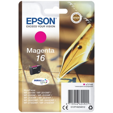 Epson DuraBrite Ultra 16 -väripatruuna korkealuokkaisten valokuvien ja dokumenttien tulostamiseen. Laadukas väripatruuna sopii Epson WorkForce-sarjan tulostimiin ja noin 165 sivun tulostukseen.Tutustu ominaisuuksiin