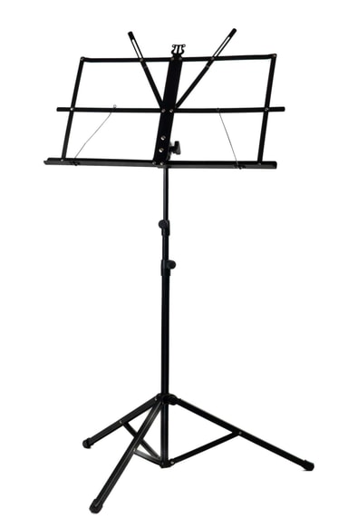 Klassinen kokoontaitettava nuottiteline Kaksi pidikettä pitävät nuotit paikoillaan Toimitetaan kantolaukun kanssa Maksimikorkeus:...Tutustu ominaisuuksiin