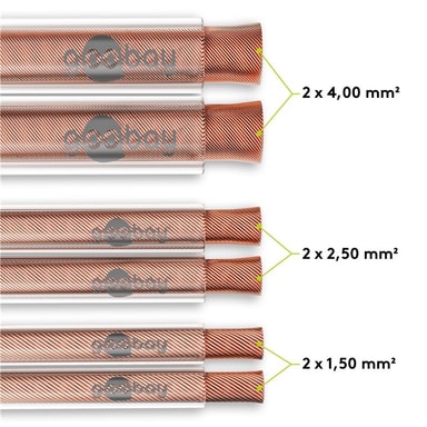 Goobay Hi-fi -kaiutinkaapeli toimitetaan metreittäin, ja sen voi koota itse kullekin käyttötarkoitukselle.