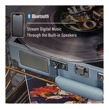 Tyylikäs ja kannettava retro levysoitin Tehokkaat sisäänrakennetut stereokaiuttimet Toistaa kaikkia yleisiä nopeuksia: 33 (1/3), 45 ja 78 RPM....Tutustu ominaisuuksiin
