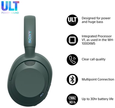 Kuulemasi voimakas ääni on Sonyn suuritehoisen integroidun V1-prosessorin ohjaamaa ja se tuotetaan suurten korkealaatuisten 40 mm:n kuljettajayksikköjen avulla. Vuosikymmenten Sony-ääniasiantuntemuksen ansiosta ULT WEAR -kuulokkeet on suunniteltu bassolinjan ihailijoille.
