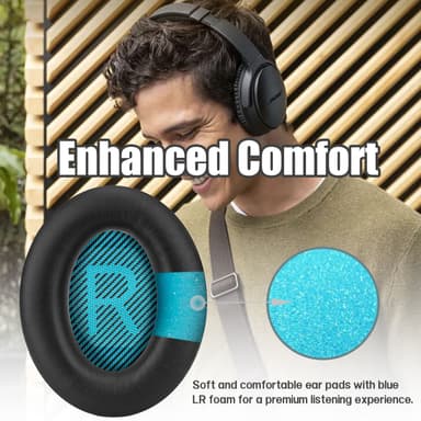 Parannettu mukavuus: Pehmeät ja mukavat korvatyynyt sinisellä LR-vaahtomuovilla takaavat ensiluokkaisen kuuntelukokemuksen.
