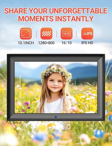 NÖRDIC Digitaalinen Valokuvakehys 10,1 Tuumaa 1280 x 800 IPS ilman WiFi:tä Kauko-ohjaimella Tukee USB- tai SD-korttia on korkealaatuinen digitaalinen kehys, joka mahdollistaa valokuvien ja videoiden helpon näyttämisen.Tutustu ominaisuuksiin