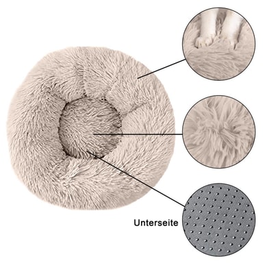 Pyöreä muoto kutsuu sinut käpertymään mukavasti. Korotettu reuna tukee koiran tai kissan päätä ja kaulaa. Pohjassa oleva liukumaton pinta estää tyynyä liukumasta, mikä tekee siitä helpon pukea ja riisua.