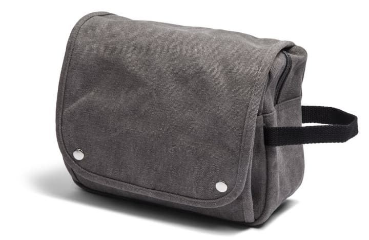 Resenecessär av kraftig canvas, upphängningsbar och med många praktiska fack. Perfekt att förvara sina badrumsartiklar i under resan samtidigt som du får dina saker organiserade.
