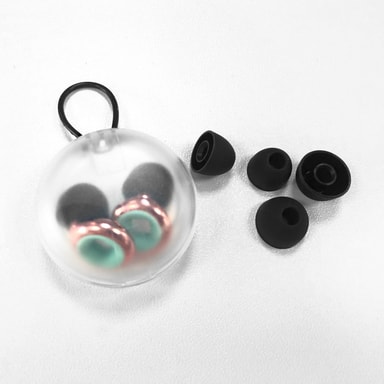 Vaihdettavat korvatulpat: Korvatulpat ovat erikokoisia ja ne voidaan vaihtaa yksilöllisten tarpeiden mukaan optimaalisen käyttömukavuuden takaamiseksi. Käytännöllinen koukku helpottaa asennusta ja poistamista.