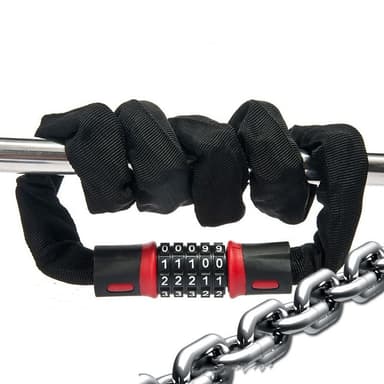 Kestävä ketjurakenne: Tämä lukko on valmistettu paksunnetusta teräksestä ja alumiiniseoksesta valmistetusta ketjusta, joka tarjoaa poikkeuksellisen kestävyyden viiltoja ja murtoyrityksiä vastaan. Ketjun rakenne takaa maksimaalisen lujuuden ja luotettavuuden mielenrauhasi takaamiseksi.