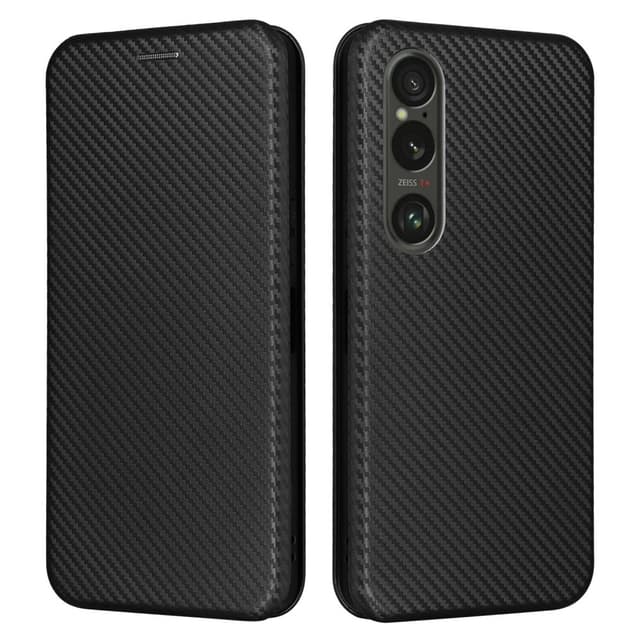 SKALO Sony Xperia 1 VI Carbon Fiber Lompakkokotelo - Musta
